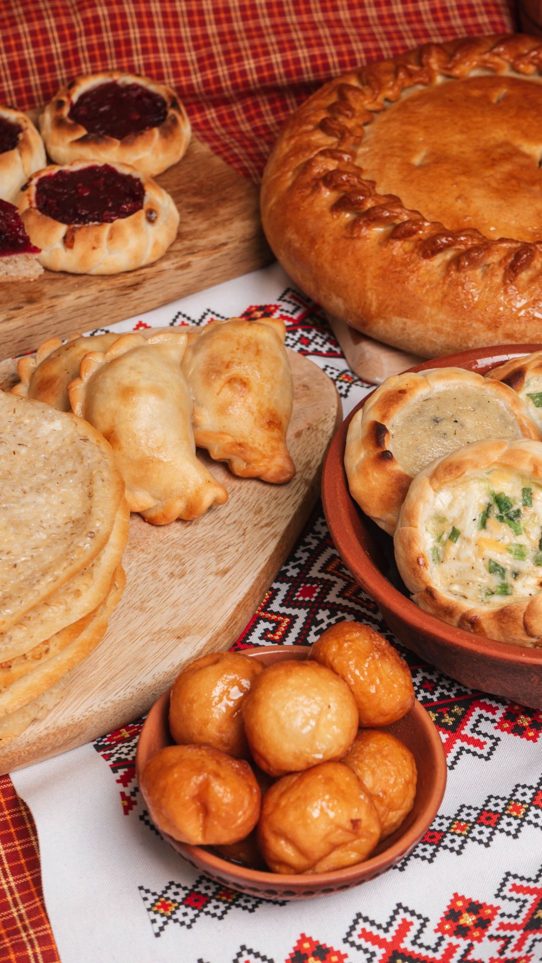 Запечённые подкоголи со сметаной, открытые пирожки перемечи, десерт уяча, блины коман мелна и шурашан мелна